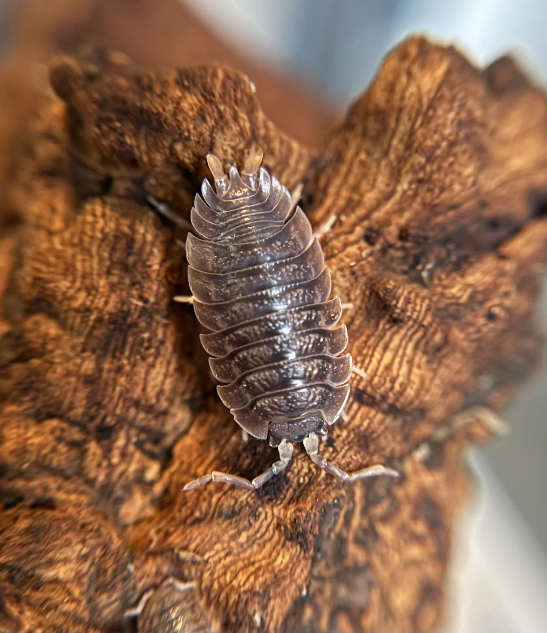 Culture of Porcellio dilatatus “Giant Canyon” isopods. These cultures come with a minimum of 10 isopods usually more of varying ages. They are one of the larger species of isopods I keep. They are a great cleanup crew. They tend to hide more than some of the other species but are great at keeping things clean and work as a supplemental feeder. These guys love their veggies especially zucchini. These isopods can also tolerate a more arid environment.